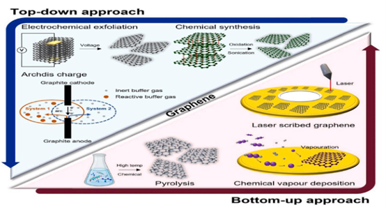 图12. 原始石墨烯合成的自上而下法和自下而上法。经许可转载自(Redy等人,2022),版权归(2022)爱思唯尔B.V.公司所有。