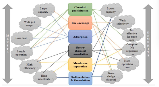 图1. 用于水体重金属(HM)处理的常见技术的优缺点。经许可转载自(Bilal等人,2022)。版权所有(2021),爱思唯尔(Elsevier)B.V.公司