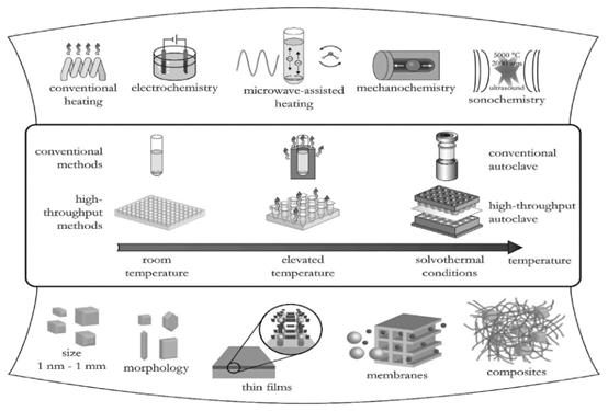 图19,基于金属 - 有机框架材料(MOFs)的不同合成途径,经(Stock和Biswas,2012)许可转载,版权归(2012年)美国化学会所有。