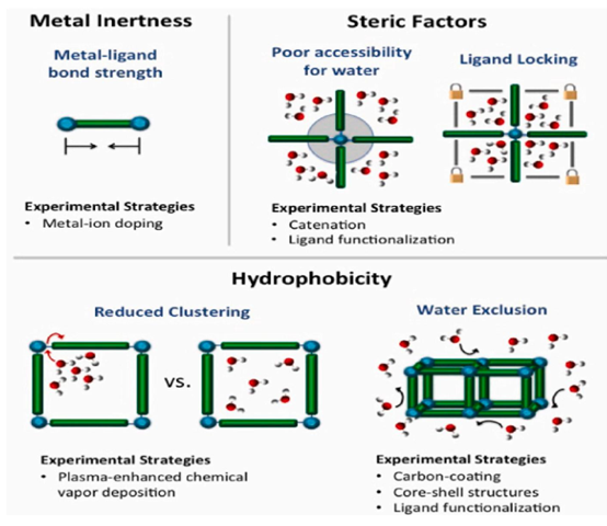 图21. 提高金属 - 有机框架材料(MOFs)水稳定性的方法与机制。经C. Li等人(2021)许可转载,版权归(2021年)爱思唯尔有限公司所有。