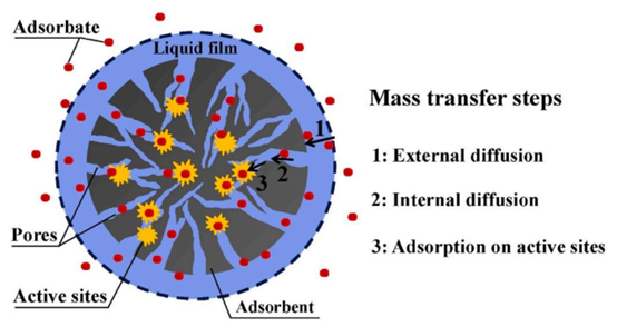 图3. 吸附过程中的传质步骤。经许可转载自(王J.与郭,2020b)。版权所有(2020),爱思唯尔(Elsevier)B.V.公司