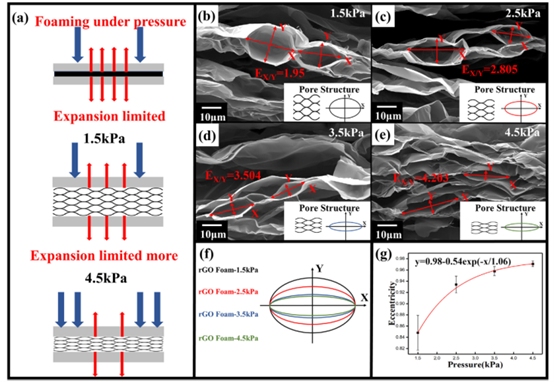 (e) 在4.5 kPa压力下制备的rGO泡沫截面SEM图像;