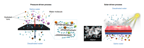 Figure 3. 基于石墨烯的3DMs,具有潜在的海水淡化应用。