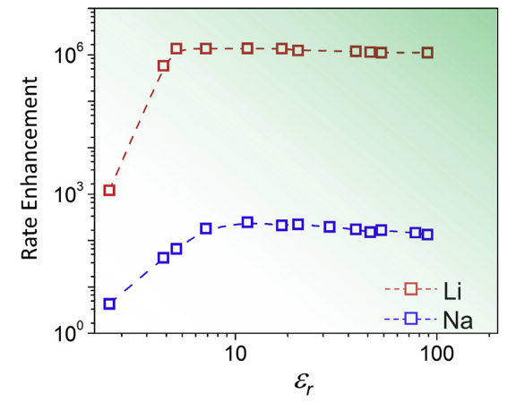 r单调增加,甚至从正变到负,表明在能量上有利于插层并改善了存储。同样,在εr≥11.5的情况下,发现Li(Na)的扩散相对于真空急剧增加了106(2×102)倍。这些结果提供了对基于石墨烯的离子电池操作的见解,并为其设计提供了指导。