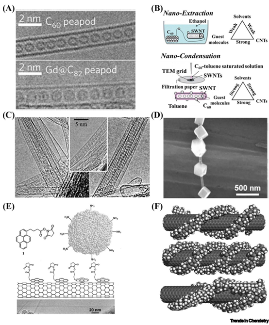 内腔填充:通过氧化打开管端,注入富勒烯、金属颗粒或生物分子(如DNA)。